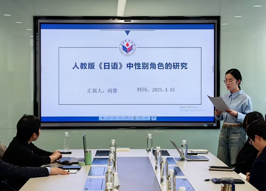 尚慧以“人教版《日语》中性别角色研究”为主题展开深入分析。她以人教版《日语》(新版)必修一至必修三为研究对象,分别研究教材插图与语言中的角色行为。她提出,日语人教版教材中男性角色为主要表现为“经济支柱形象”等、女性角色主要表现为“家庭照料者”等。最后对教师层面与教科书审查层面提出建议。