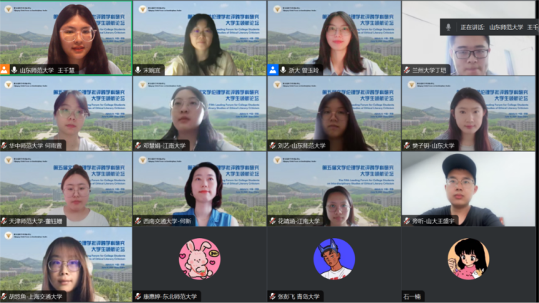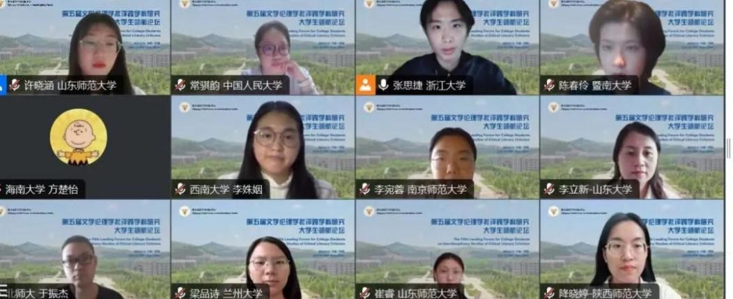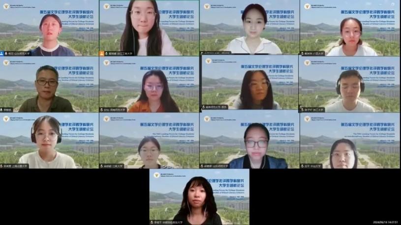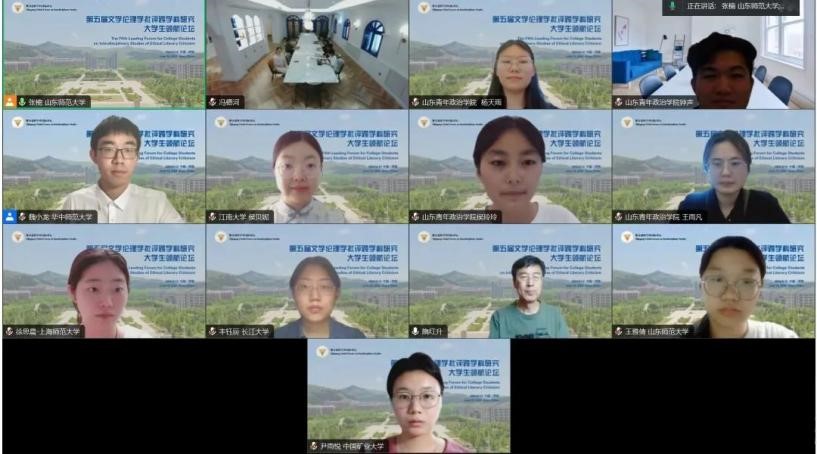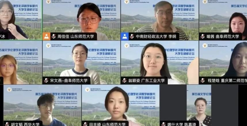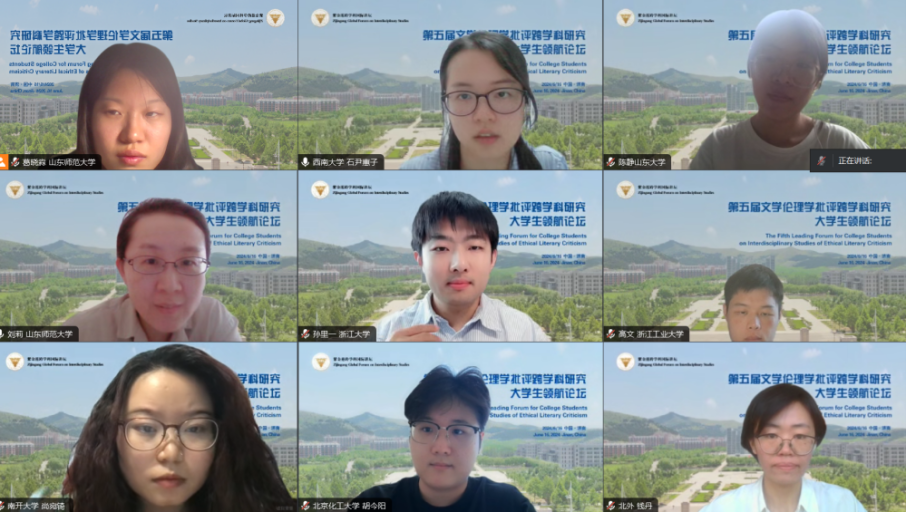 2024年6月16日,由浙江大学世界文学跨学科研究中心联合山东师范大学外国语leyu(中国)、浙江大学外国语leyu(中国)英文系、英国华威大学、韩国建国大学、日本九州大学、马来西亚马来亚大学、越南顺化师范大学、菲律宾圣托马斯大学共同主办的“紫金港跨学科国际讲坛”系列学术活动“第五届文学伦理学批评跨学科研究大学生领航论坛”在山东师范大学长清湖校区成功举办。我院35名本科生和研究生同学应邀参加第五届文学伦理学批评跨学科研究大学生领航论坛。我院英语语言文学专业研究生徐智艺同学作为学生代表作主题报告,英语语言文学专业研究生王千慧等19名同学主持了小组发言。