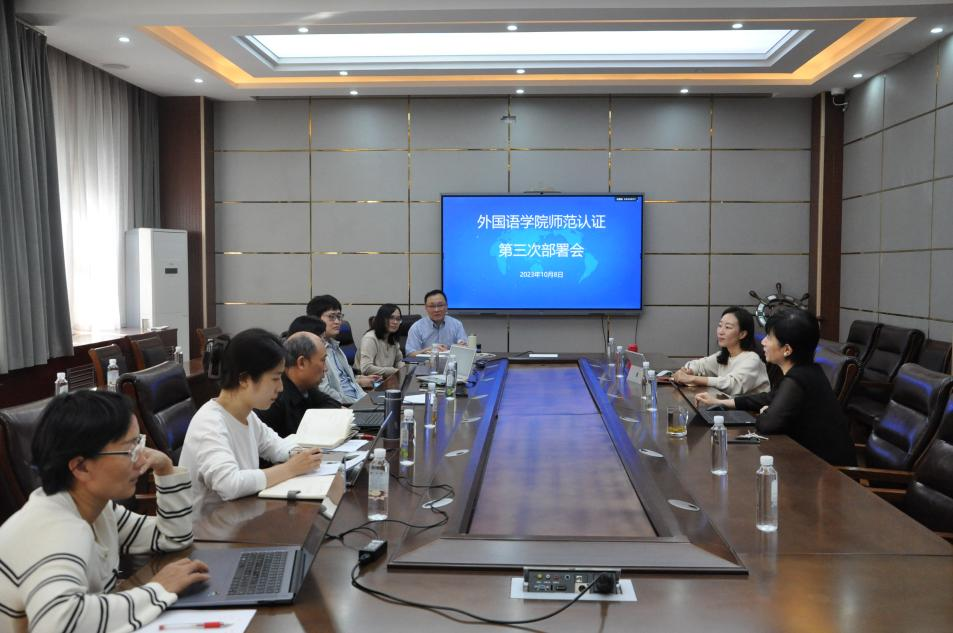 2023年10月8日下午,山东师范大学外国语leyu(中国)在长清湖校区文渊楼A313会议室召开了外国语leyu(中国)日语、俄语师范类专业认证推进会。王卓院长、张媛副院长出席会议,日语系崔颖副主任、俄语系王世臣副主任、两系任课教师参加了会议。本次部署会由张媛副院长主持。