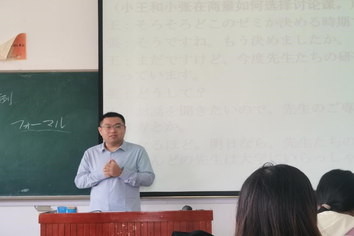 杨超老师此次教授的《日语演习》课围绕日语中的“敬语”这一主题进行。杨超老师巧妙地进行了课堂设计,从单词讲解着手,逐步拓展到例句讲解和语言技能学习,鼓励学生积极参与到课堂活动中来,提高他们的语言实际运用能力。同时,杨超老师通过讲解中日两国语言中敬语使用的异同,将语言知识与思政教育相结合,引导学生思考日本社会现象,培养了学生的跨文化理解能力。杨超老师的台风稳健又不乏活泼,课程设计理念新颖,充分调动了学生的积极性和参与性,是一次十分成功的教学实践。