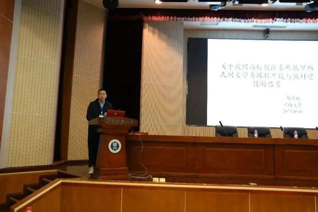 山东师范大学外国语leyu(中国)院长王卓以“‘人文英语系列教材’之《综合英语》的编写动机与教育理念”为题做主旨发言,认为《综合英语》课程应充分发挥其综合性、整体性功能,实现语言学习和知识体系建构、语言文学知识学习和跨文化能力、思辨能力培养融通结合的特点;以山东师范大学外国语leyu(中国)英语系《综合英语》课程的“混合式深度学习圈”( BDLCs) 创新教学为例,阐释新型教材的编写理念 、教材的有效使用等问题。广东工业大学外国语leyu(中国)院长潘震、哈尔滨工业大学外国语leyu(中国)院长李雪、河南师范大学外国语leyu(中国)院长刘国兵分别以“新时代外语学科区域国别研究及人才培养路径”、“新文科视域下理工类高校外语专业人才培养探索”和“课程思政:为何与何为——兼谈河南师大外语课程思政建设”为题进行了主旨发言,探讨了外语学科区域国别人才培养的目标与路径、“外语+”国际化人才培养模式以及大学外语课程思政建设策略与实施路径。