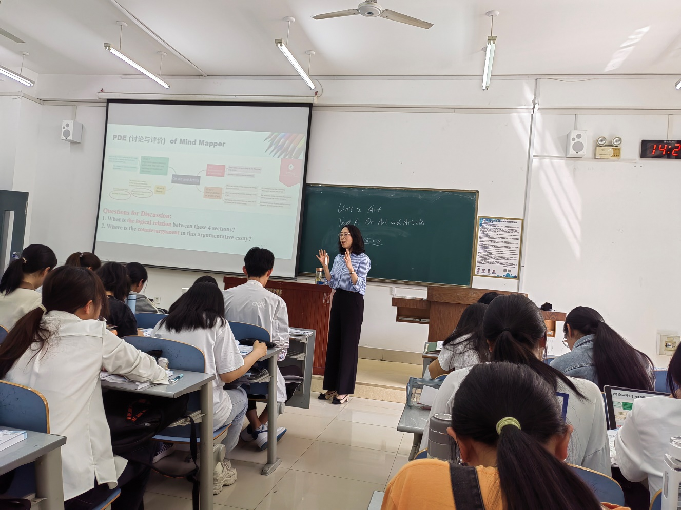 王秀香老师的《综合英语》课围绕第二单元“Art”这一主题,进行了精心设计,运用了混合式深度学习圈这一教学方法,将背景知识介绍、语言技能学习、综合人文素养提升及思政元素融为一体,课堂张弛有度,授课内容扎实,教学手段多样,学生参与度强,收到了较好的教学效果。