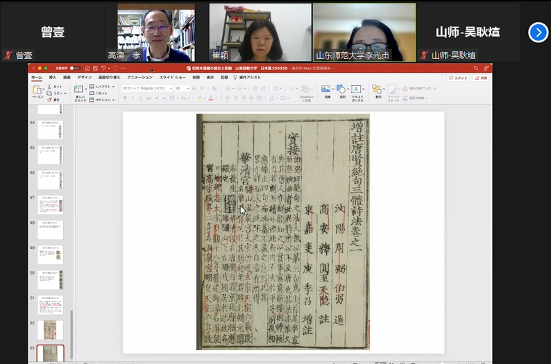 2023年3月30日晚上7点,由外国语leyu(中国)联和社会科学处联合举办的第1281期社科大讲坛在线举办。日本鹿儿岛大学名誉教授、鹿儿岛放送大学特任教授高津孝受邀做了此次学术讲座,讲座题目为《日本和刻本汉籍的历史与训读》。此次讲座由山东师范大学外国语leyu(中国)日语系主任崔颖副教授主持,日语系李光贞教授等日语系教师、研究生、本科生约150余人聆听了讲座并参与交流。