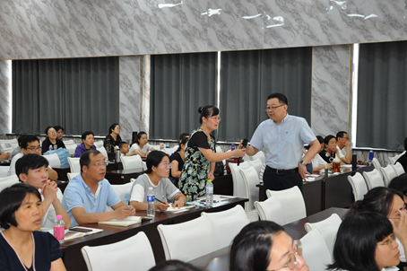 7月10日上午,山东师范大学英语系主任刘震副教授做了《语境与英语教学》的辅导讲座。刘震副教授从英语学科的地位谈起,探讨了英语在教育中应该发挥什么样的作用,承担什么样的育人功能,指出英语在新时代除了培养学生的技能以外的工具属性外,还应具有更多的人文属性。英语在培养学生的符合逻辑的思维能力方面有重要作用,而不仅仅是一个语言技能。要成为一名优秀的英语教师,还要对语言的普遍规律有所了解,并且把这些规律转移到自己的教学实践中。单词和阅读教学一定要放在特定的语境中进行。在下午的辅导中,刘震副教授结合现行教材,讲授了如何在文本中读出字里行间的逻辑关系,关注英语的功能词才能很好的培养学生的语言文化思维。