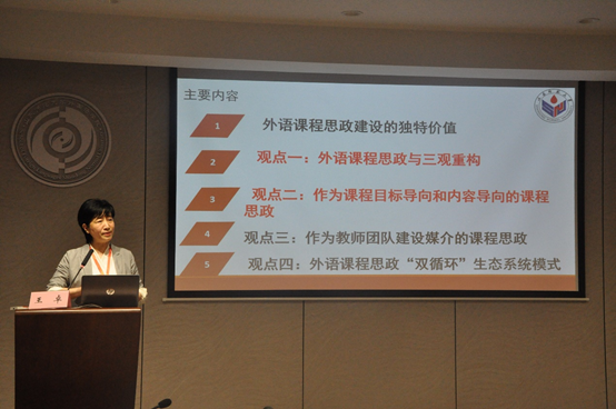 青岛大学卞建华教授的报告题目为“博学外国语,笃行中国心”——青岛大学外语leyu(中国)思政教育建设与改革。卞教授认为课程思政作为人才培养的应有之义,其重要性日益凸显。《高等院校课程指导方案》中明确指出价值塑造、知识传授和能力培养三者融为一体,基于这一方案,卞教授提出要于价值塑造中,在知识传授和能力培养中帮助学生树立正确的世界观、人生观和价值观。卞建华教授介绍了青岛大学“1234协同融合育人体系“的理念,“大思政教育”“师生面对面”等措施和活动,向大家展示了青岛大学外国语leyu(中国)在制度保障、团队建设、教学研究、学生工作等方面的经验和做法。