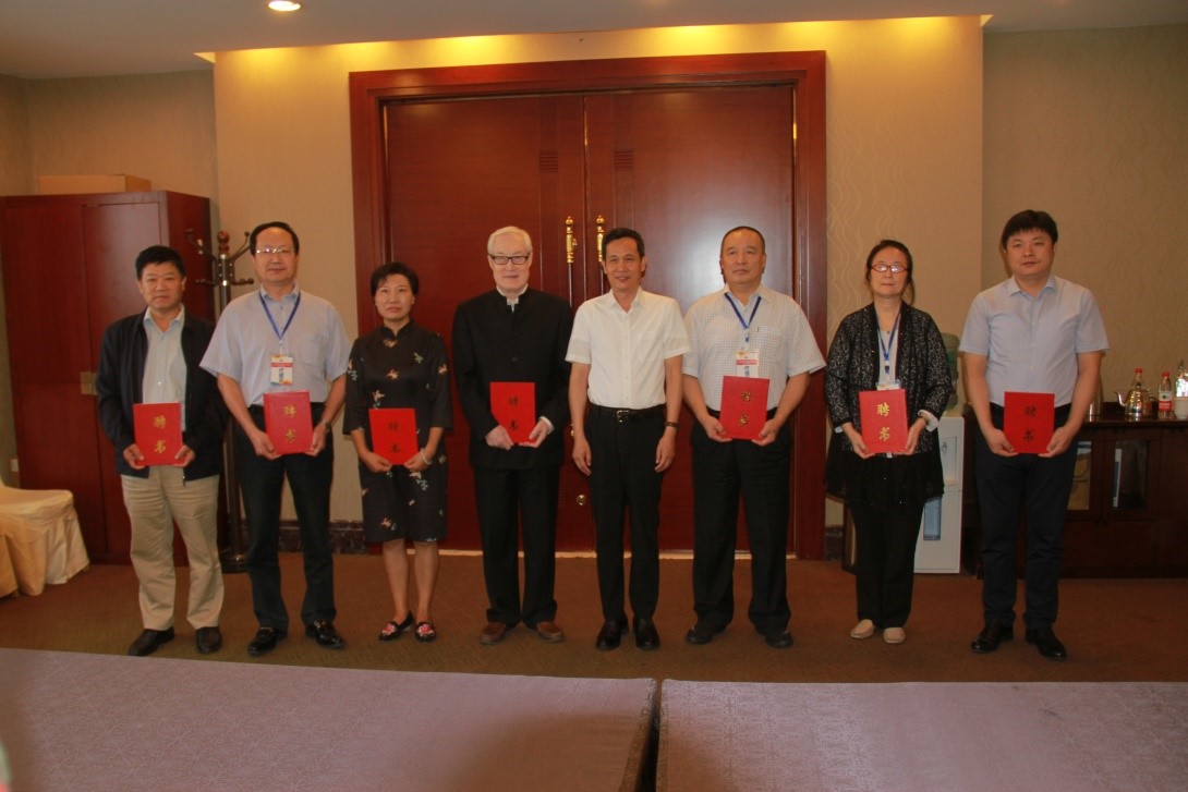 山东师范大学纪委书记姚东方研究员向与会专家颁发学术顾问聘书并合影左起
