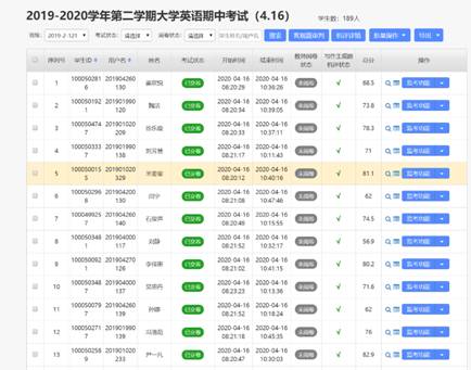 教师在平台发布期中测试 任课教师在平台查看考试情况