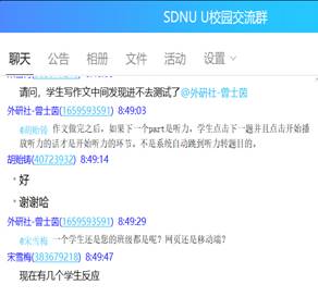 对于考试中出现的技术类问题,任课教师与技术人员及学生通过QQ群实现实时互动的沟通,及时解决各种问题。
