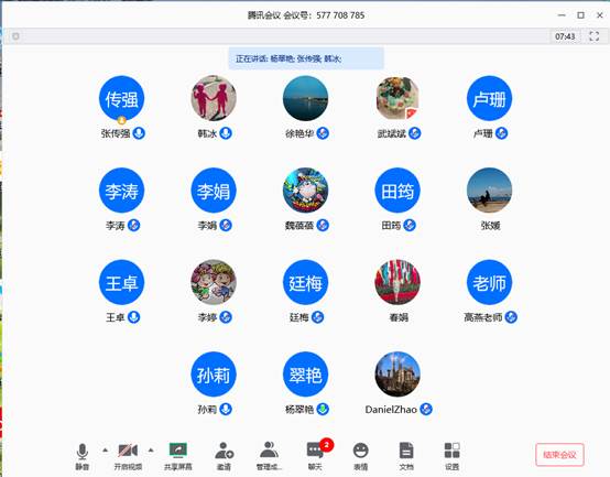 3. 老师们交流了自开学以来网上直播教学的总体情况。从线下备课,线上直播,教学平台的使用,课堂互动以及教学过程中出现的问题进行了沟通。李涛老师特别指出了U校园使用中存在的问题,孙莉老师提出了学生可能进入课堂但未必认真听课的不实出勤的情况。对此,大家充分交流了各种切实可行的策略以保证学生听课质量。尽管如此,从学生的反馈来看,总体教学过程平稳有序,学生总体反映较好,比较接受这种授课模式。