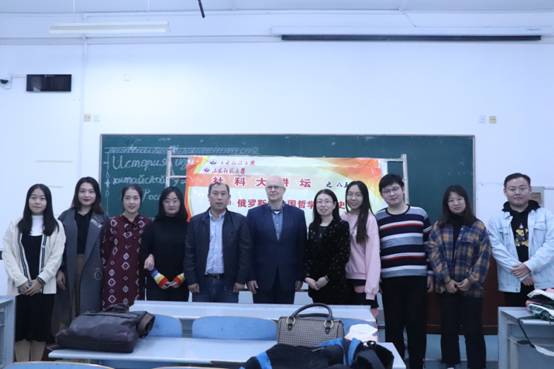 10月20日下午,外国语leyu(中国)联合社会科学处主办的第855期社科大讲坛在长清湖校区文渊楼B区234教室举行。本次论坛特邀俄罗斯著名汉学家、俄罗斯科leyu(中国)东方学研究所中国研究部主任科布杰夫教授作了题为“俄罗斯的中国哲学研究史”的学术报告。报告会由外国语leyu(中国)俄语系负责人孙嵩霞老师主持,俄语系部分教师、研究生和本科生90余人聆听了此次报告。