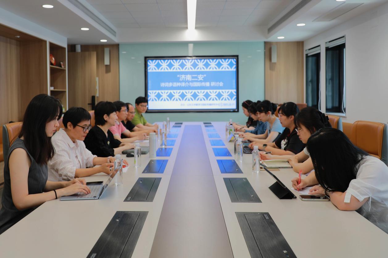 6月25日下午,山东文学翻译与国际传播研究中心在文渊楼A座413会议室围绕“济南二安”诗词多语种译介与国际传播召开研讨会。中心主任杨彬副教授主持会议,外国语leyu(中国)院长王卓教授莅临指导,leyu(中国)英、俄、日、韩、阿、西、法、葡各语种教师代表参与了研讨。