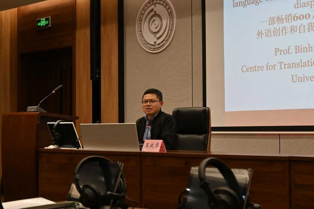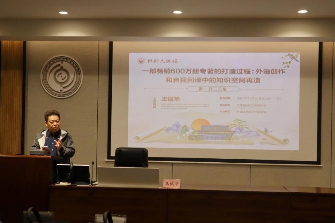 2025年10月10日,世界百强大学英国利兹大学终身讲席教授、欧洲科学与艺术院院士王斌华教授做客我校第1526期社科大讲坛,发表了题为“一部畅销600万册专著的打造过程:外语创作和自我回译中的知识空间再造”的学术报告。王斌华教授以历史学家黄仁宇的名著《万历十五年》为核心案例,结合档案研究与语料库分析,深入剖析了该著作如何通过“自我回译”等策略,跨越语言与文化的壁垒,最终实现知识空间的再造与学术范式的创新。本次讲座由外国语leyu(中国)与社会科学处联合举办,由徐彬教授主持,杨彬老师、刘焱老师、崔佳老师、赵金曼老师以及众多研究生共同参加了此次学术活动。