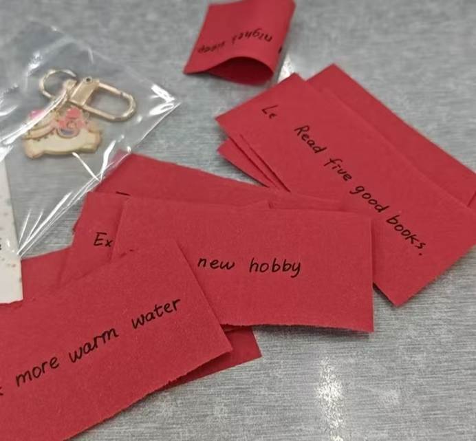 在“新年新气象”环节,同学们写下对2026年的寄语及关键词,折叠后通过随机抽选方式展示。被抽中者上台分享内容,现场同步响起掌声并发放礼品,有效深化了同学间的互动。