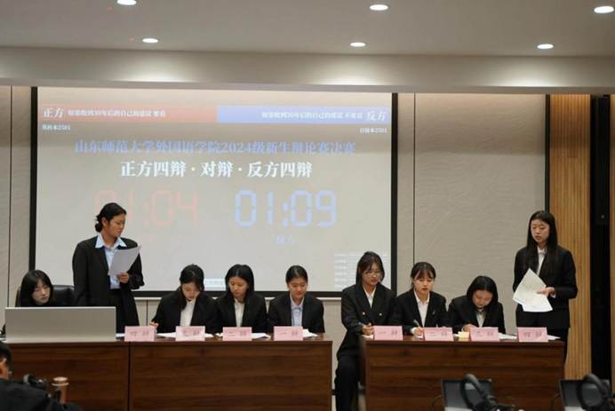 为当下选择提供参考”为依托,层层递进地阐释“看建议”的价值;反方日语本2501班代表队巧思频出、反驳有力,凭借“人生的可能性在于未知探索,提前知晓建议会消解当下的体验与成长”的论述,与正方展开多轮精彩攻防。