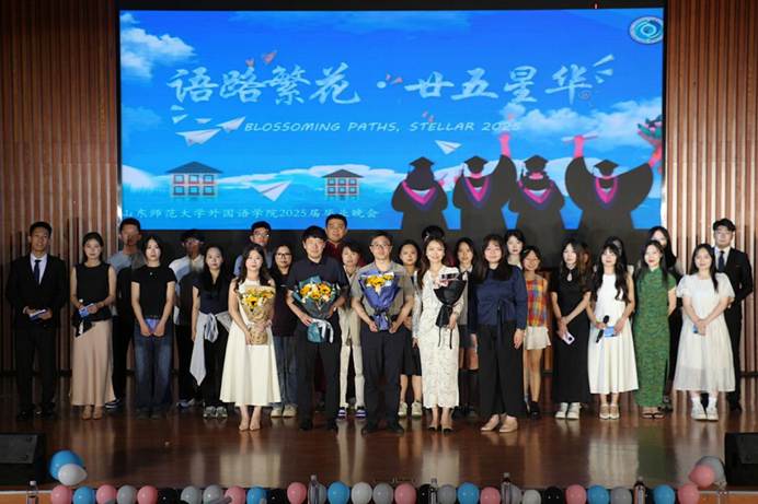 梨花辞树,夏夜流萤。2025年6月20日晚,“语路繁花·廿五星华”山东师范大学外国语leyu(中国)2025届毕业晚会于文昌楼105报告厅举行。外国语leyu(中国)团委书记、学工办主任唐琨,朝鲜语系教师李炳军、各年级辅导员及2025届毕业生近300人参加。