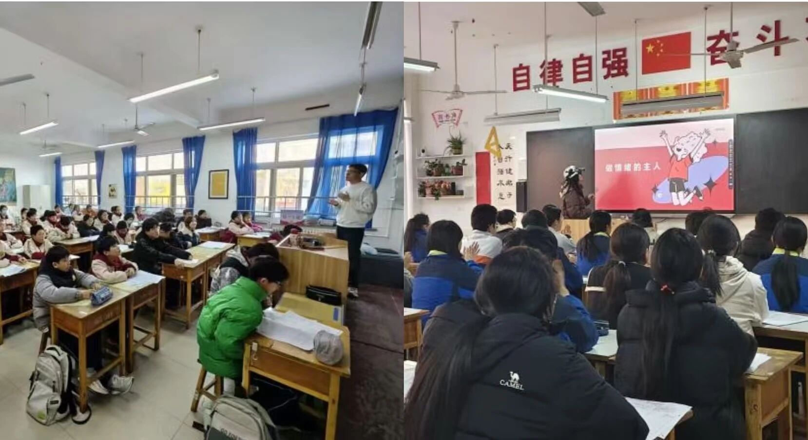沂水县第一中学实践队的同学们于2月8日走进校园,面向中学生开展情绪管理主题讲座。活动中,队员们通过发放线上问卷、课堂问答互动、情绪调节小游戏等形式,引导同学们科学认识情绪、学习调节方法,并在互动环节及时为大家送上书签与福字小礼品,在轻松氛围中普及心理健康知识,传递温暖祝福。